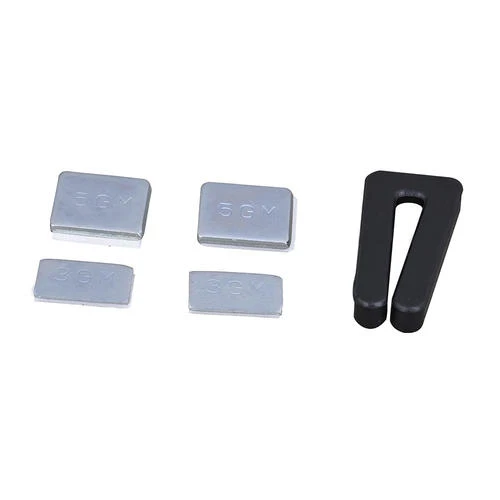 This Patriot Lighting® fan blade balancing kit includes four pieces of metal balancing blocks in chrome finish and four pieces of plastic clips in black color. Use this kit to support your ceiling fan blades to reduce wobbling.