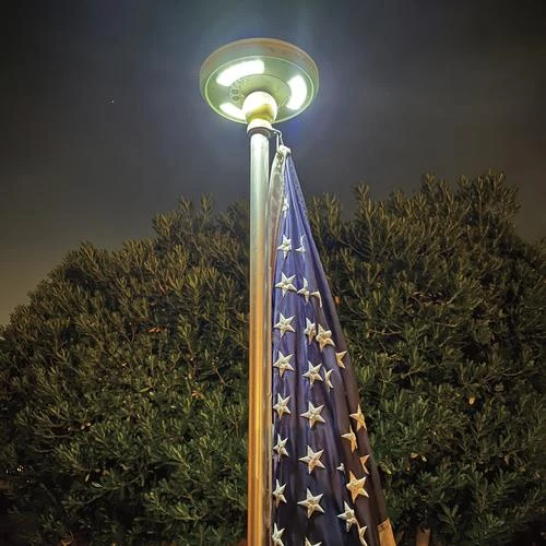 This solar flag light is adds a simple way to light up a standard light pole. With it’s bright white light at 50 lumens, and included rechargeable batteries, this light is easy and effortless way to illuminate a hanging flag or banner.