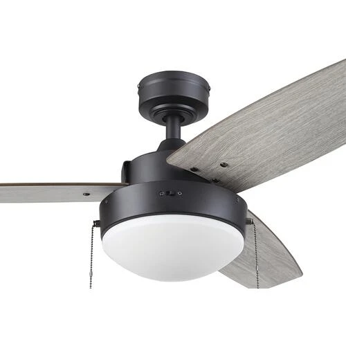 Patriot Lighting presents the 42 inch bronze Joselynn ceiling fan with reversible blades and a frosted globe. The Joselynn 3 blade fan has a contemporary design ideal for your smaller rooms that need a modern look. Two LED medium based A15 bulbs provide adequate lighting for most rooms. Includes remote control.