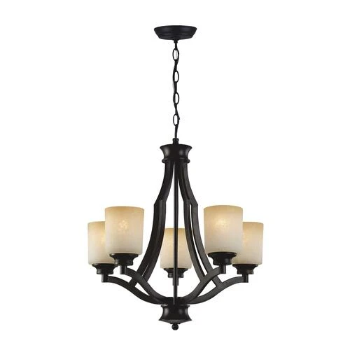 The Patriot Lighting® Warren 24″ Rubbed Antique Bronze Transitional Chandelier comes with warm tea-stained glass shades. It will enhance any décor with its dark finish and unique style. This light requires five 100 watt type A bulbs.