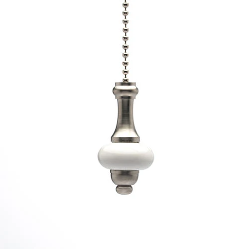This Patriot Lighting® brushed chrome with white pull chain fits all Patriot Lighting® ceiling fans. It features a porcelain drop.