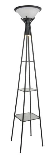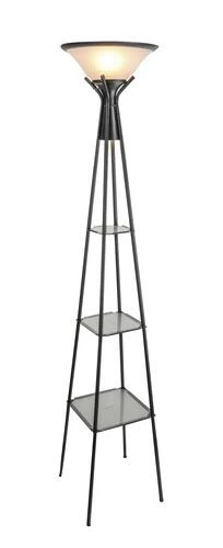 This trendy and decorative floor lamp will brighten your room with functional style. The metal etagere lamp features three decorative shelves that are perfect for displaying your favorite photos, plants, or collectibles, or even keeping books and magazines within easy reach.