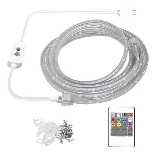 Bring color into your life with this color-changing, damp-rated, 16-foot linkable LED rope light. Install with the included mounting hardware for easy and bright light. Using included remote or in-line control, change between eight colors and multiple flashing and fading modes. Personalize your space with this energy-efficient LED rope light today.