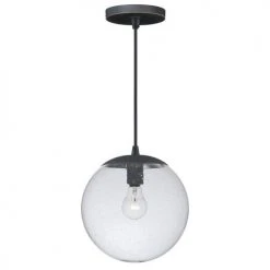 The Mini Pendant collection features a refined mix of contemporary and urban style that creates a charming ambiance for your home. This black iron solo pendant is the perfect solution to transform any kitchen island to a chic attraction. The clear seeded glass used in this collection provides maximum light output and a unique look. Combine that with a vintage Edison style filament bulb to complete the look. This collection comes in multiple finishes that can coordinate with virtually any room style.