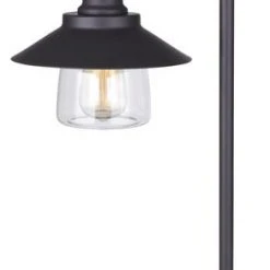 The industrial-era design of the Bynum table lamp is clean and simple with a pipe-inspired arm and classic clear glass to add a tasteful accent to any space. Included is a vintage-style light bulb to complete this classic look.