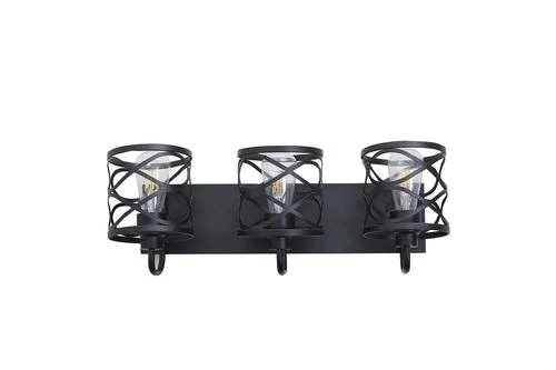 The transitional style of the Phinny matte black three-light vanity light with caged detail is both practical and stylish. The simple style and modern lines make this lighting feature ideal for above your bathroom vanity.