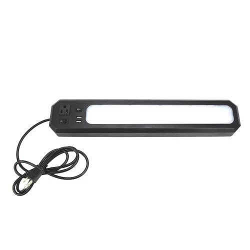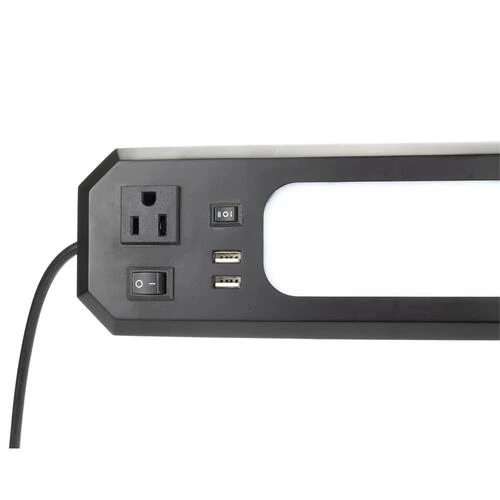 The Patriot Lighting® 18-Inch LED Black Workbench Light Bar has an output of 1000 lumens and a color temperature of 4000K (bright white). It has a frosted polycarbonate lens and a polycarbonate housing. This LED shop light fixture includes a power cord and is linkable up to ten units. It features an integrated outlet for fixture-to-fixture power, two USB ports, a Hi-Low switch for lumen adjustability, internal built-in magnets for quick installation, and screws for surface mounting. This unit is ideal for workbench lighting, providing ample light for your work space. This light is ETL listed, and comes with a five-year warranty. Instant-on LEDs provides full brightness immediately unlike fluorescent lamps. It is suitable for dry locations, with a 50,000-hour LED rated life span.