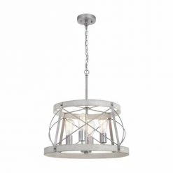 Coupon 🎉 Patriot Lighting® Bea White Wash Faux Wood And Galvanized 4-Light Pendant 🔔