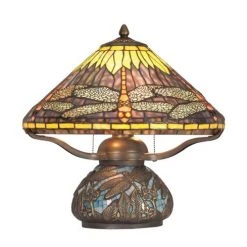 The Patriot Lighting® Dragonfly 16″ H Antique Bronze Tiffany Table Lamp is beautifully crafted with a Tiffany-style glass shade. The dual pull chain switch allows for multiple lighting options. It is UL listed for indoor use.