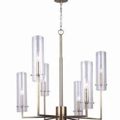 Gianessa embodies everything you are looking for in a chandelier with its unique six-light design, beautiful gold finish, and cylindrical seeded glass shade on the end of each arm. Gianessa was designed to be the center of attention, making it the perfect addition to your front entryway for everyone to see the minute they walk through the door.