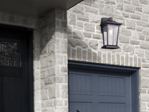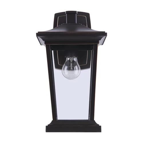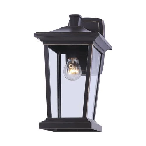 The Patriot Lighting outdoor wall light from our Holliday collection is a great way to add simple lighting to the outside of your home without sacrificing your style. The transitional look of Holliday makes it the perfect fit for a front entranceway, garage, or back deck while the oil-rubbed bronze finish paired with clear glass creates that warm feeling of home.