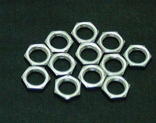 These Patriot Lighting® Small Nickel Steel Lock Nuts measure out to 1/8 inch. There are twelve lock nuts per pack.