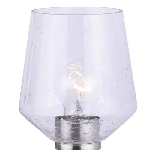 The vintage style of the Patriot Lighting® Caylon collection gives a beautifully modern treatment to the familiarity and comfort of home lighting. The Caylon collection is sure to fit in with your decor with a clean brushed nickel finish and uniquely-shaped seeded glass shades. Create a feeling of harmony throughout your home with additional coordinating Caylon light fixtures (sold separately). Complete the industrial feel by adding vintage-style bulbs.