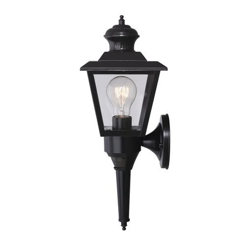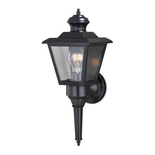 The Patriot Lighting® Brookline III outdoor wall light with Dualux technology adds a stylish touch to your outdoor spaces. The black finish and clear glass provide just the right look for this distinctive light. Feel safe and stylish when choosing the Brookline III light. Not only does it enhance your outdoors, but it provides the level of security needed. The motion-sensor security feature allows you to feel at ease when someone approaches your home. This light includes adjustable sensitivity ranges between 5 and 40 feet to fit your needs. Additionally, the adjustable shutoff delay can be set between five seconds to three minutes. Dualux technology features two-level lighting; at dusk, the light automatically turns on to an ambient light, then brightens to 100 percent when motion is detected. The Brookline III outdoor motion-sensing wall light has an advanced feature allowing the low-level light to be adjustable up to 50 percent of full brightness to customize your needs.
