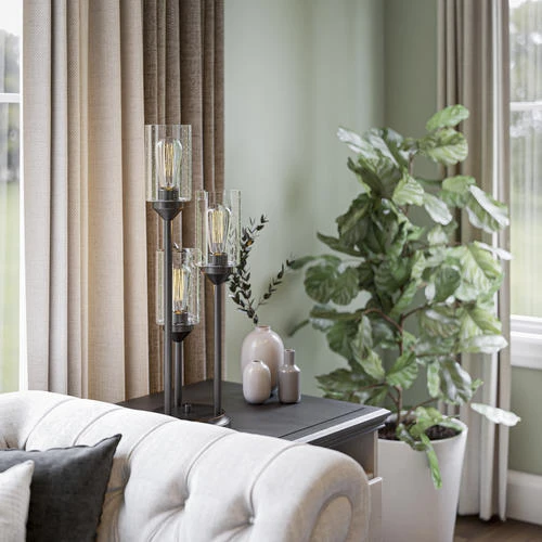 The Lance 3 Lt 28.37″ Table Lamp illuminates. The clear seeded glass adds style and charisma to your living area, this collection features a matching floor lamp to complete your look.
