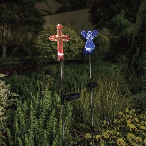 This Patriot Lighting Cross/Angel light instantly adds atmosphere to your front entrance, backyard, garden, poolside, pathway. Comes with a color changing LED that you never need to replace. With no wiring required and minimal assembly, this path light is easy to install and ready to use in minutes.