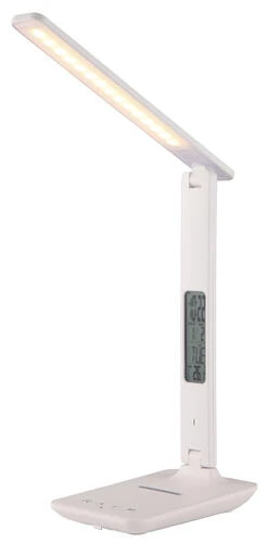 This sleek LED desk lamp delivers convenience and style. It offers three lighting modes, five levels of brightness, easy-to-use touch sensitive dimming and power controls, and a charging station for your smart devices.