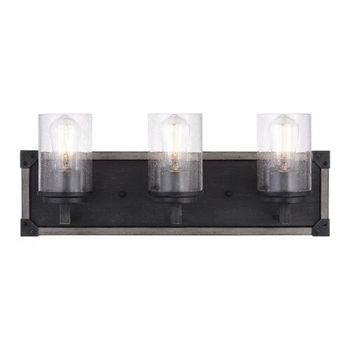 Wholesale 🥰 Patriot Lighting® Levon Weathered Gray Faux Wood And Black 3-Light Vanity Light ✨
